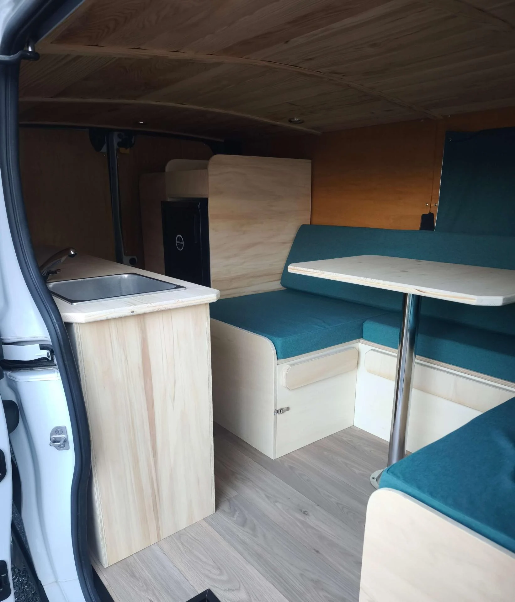 Plan de travail + table en épicéa 22mm (Vernis – 2 couches)