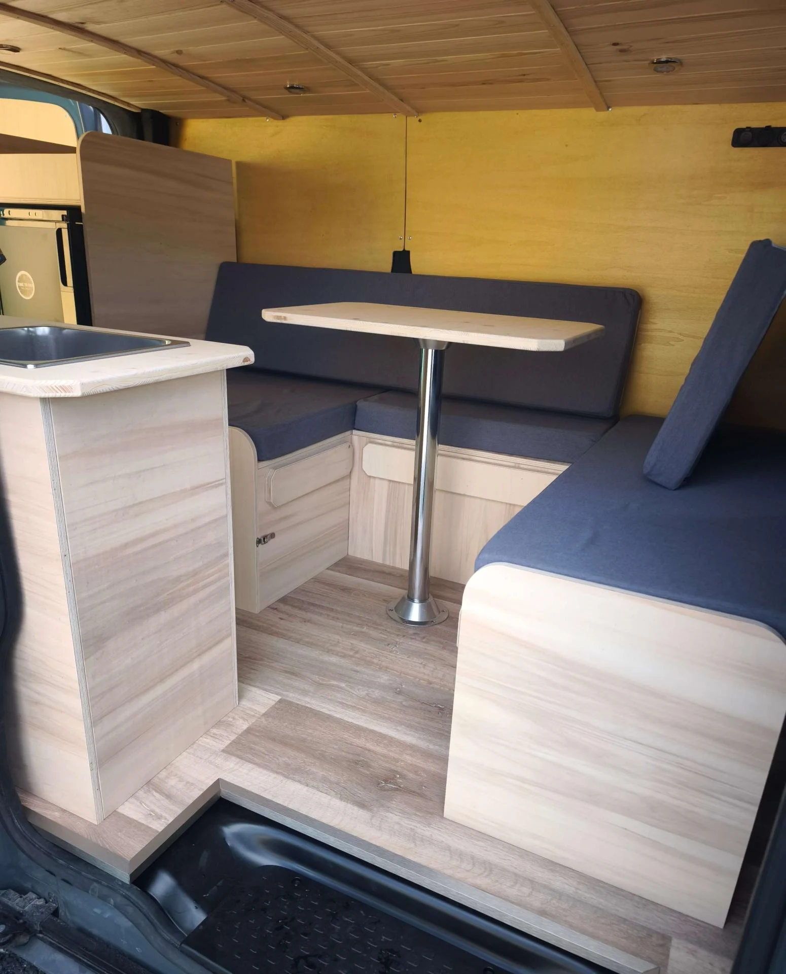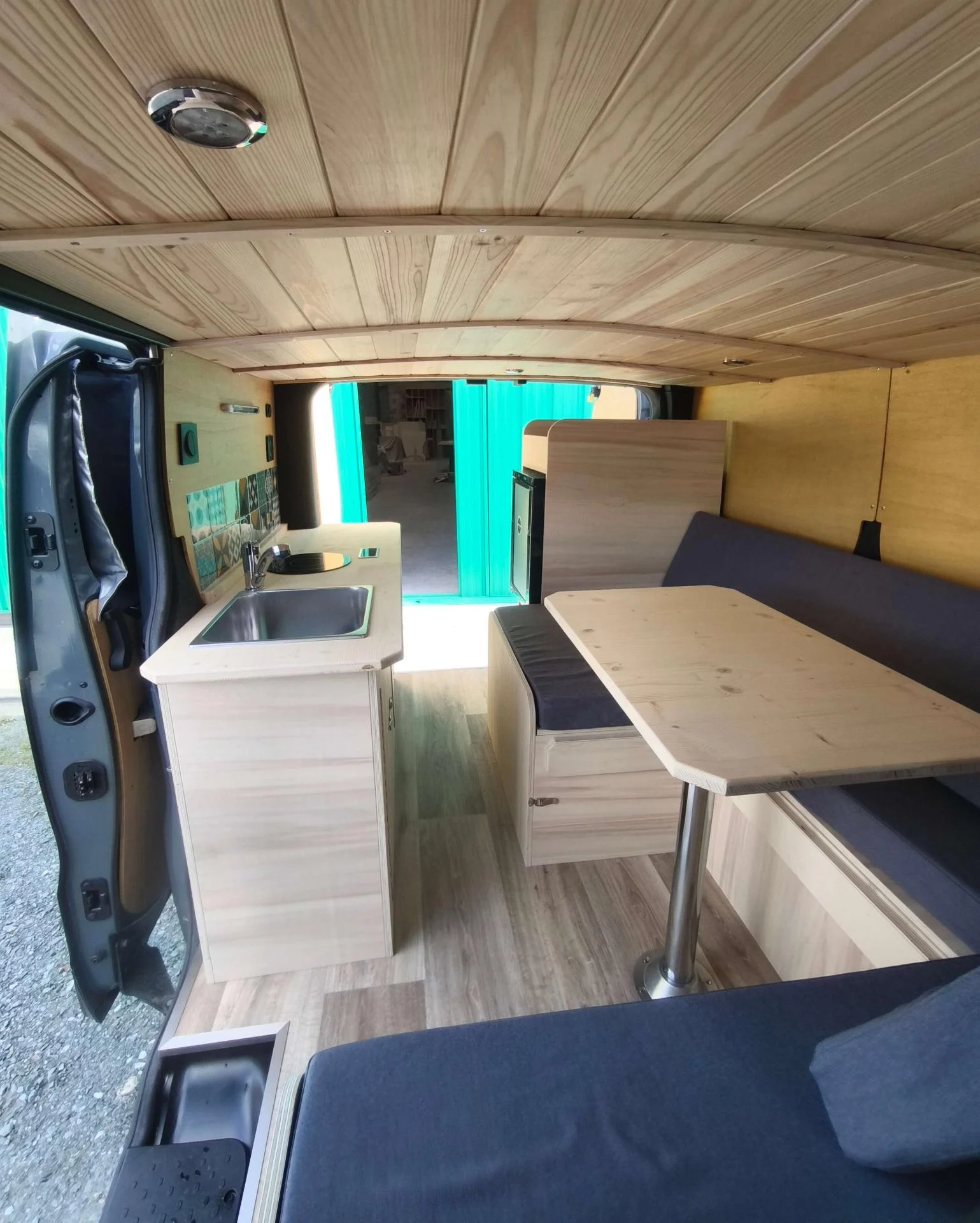 Plan de travail + table en épicéa 22mm (Vernis – 2 couches)