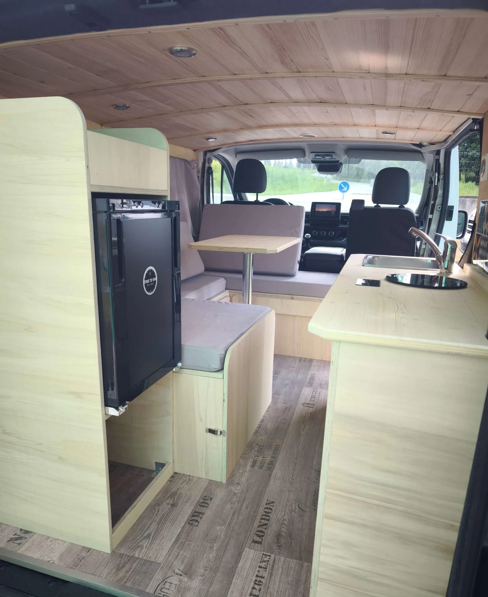 Plan de travail + table en épicéa 22mm (Vernis – 2 couches)